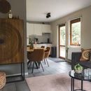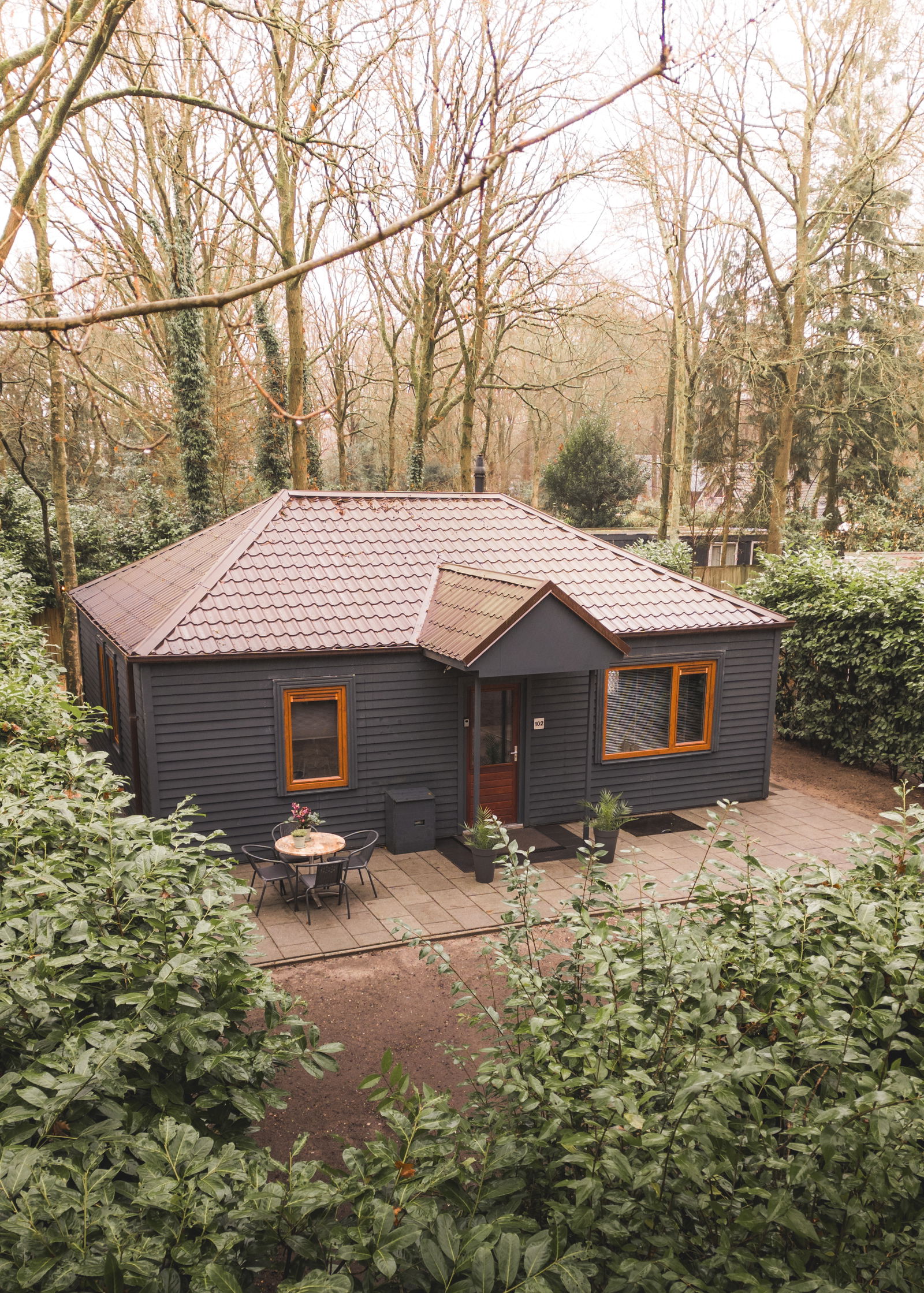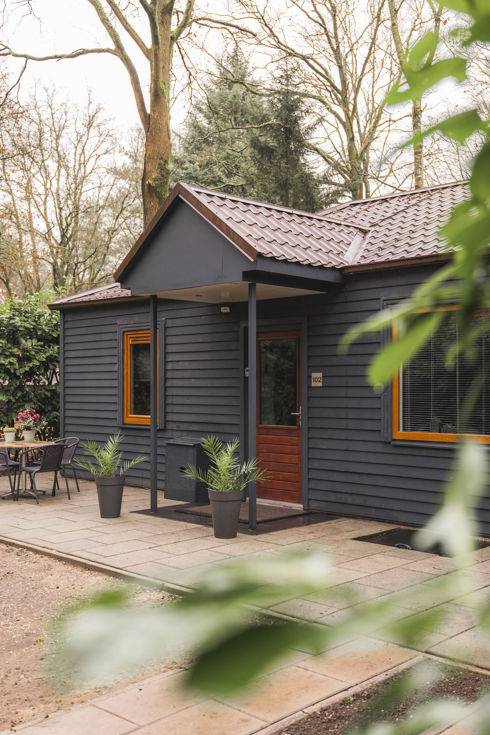 Binnen voelt het meteen huiselijk, buiten sta je direct tussen de bomen.