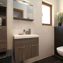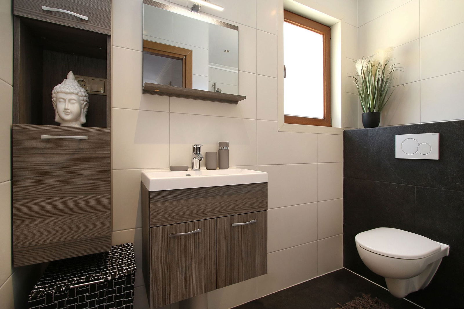 De badkamer is netjes en praktisch ingericht en beschikt over een fijne douche en wastafel.
