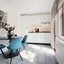 De keuken is volledig uitgerust en biedt alles om zelf te koken. Er is een eettafel voor vier personen en een kinderstoel. Een prettige plek voor een rustig ontbijt, een gezamenlijke maaltijd of een lange avond aan tafel.