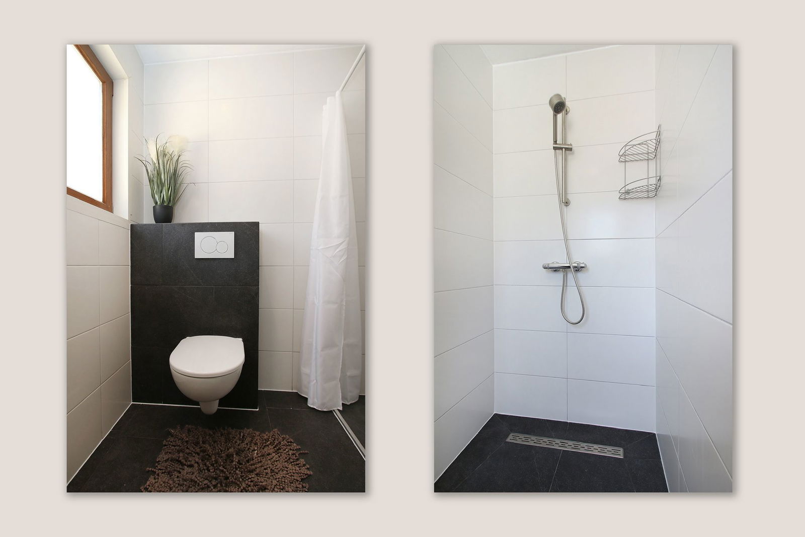 Naast de badkamer vind je een wasmachine en droger, handig bij een langer verblijf.