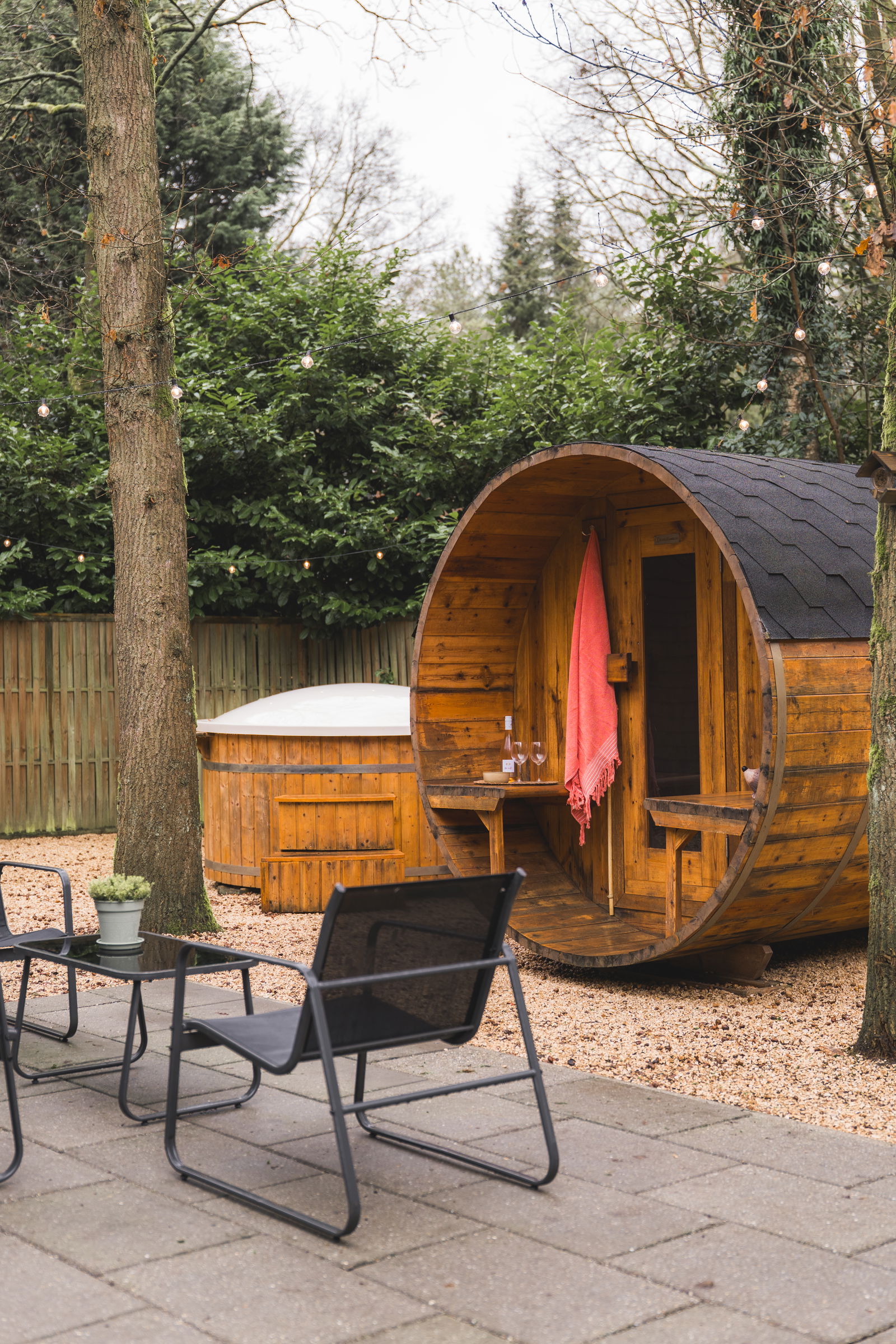 Naast de hottub staat de volledig afgeschermde barrelsauna, exclusief voor jullie verblijf.